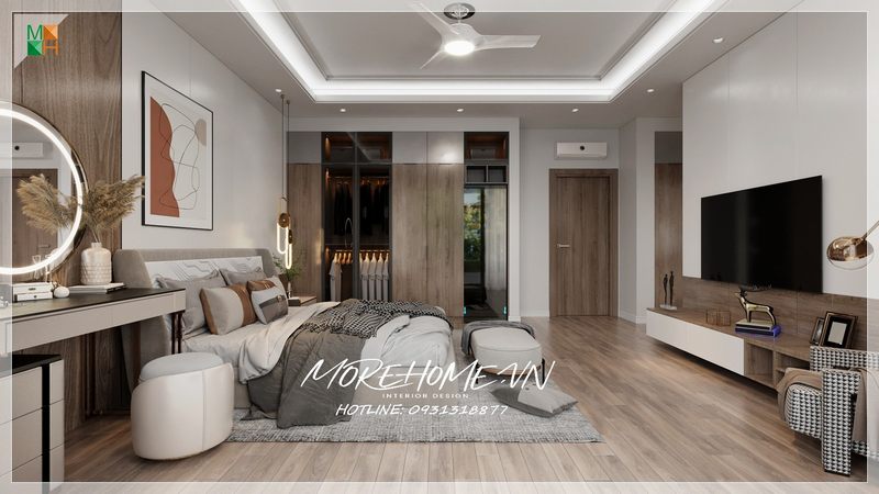 Kệ tivi cũng là một thiết kế nội thất tạo nên độ sang trọng và tiện nghi cho căn phòng ngủ trở nên tinh tế hơn bao giờ hết.