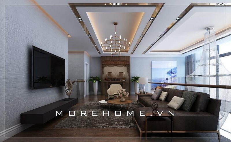 Thiết kế kệ tivi gỗ hiện đại đẹp cho khu vực phòng sinh hoạt chung tại biệt thự starlake tây hồ