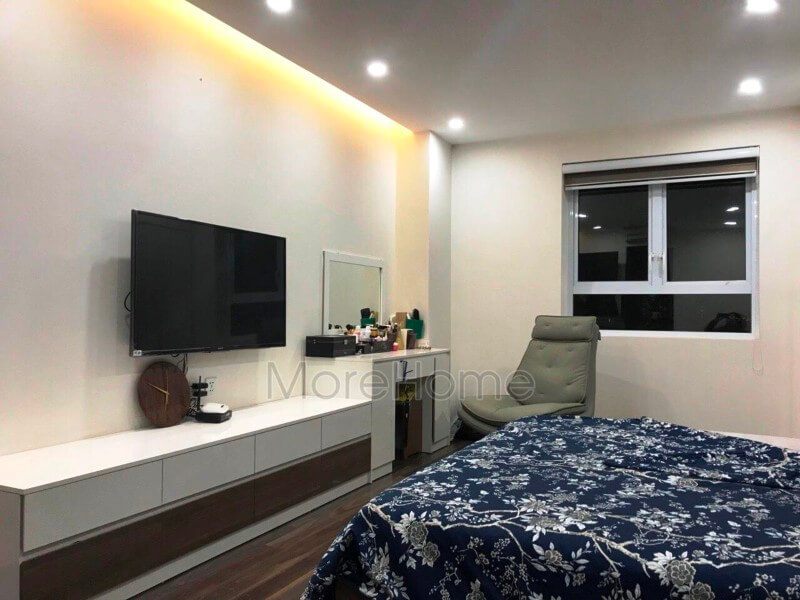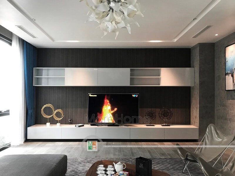 Thi công kệ tivi gỗ công nghiệp cho phòng ngủ chung cư hiện đại tại Thăng Long Number One